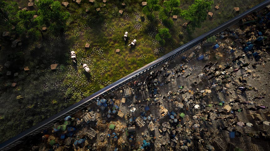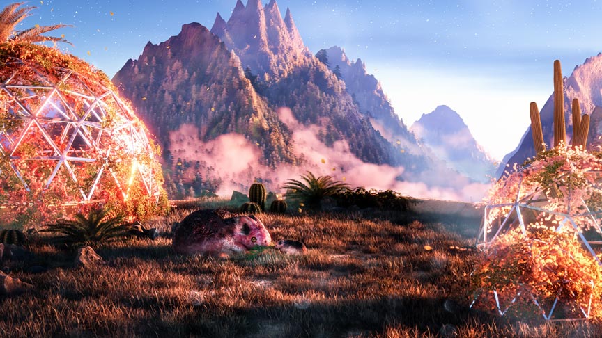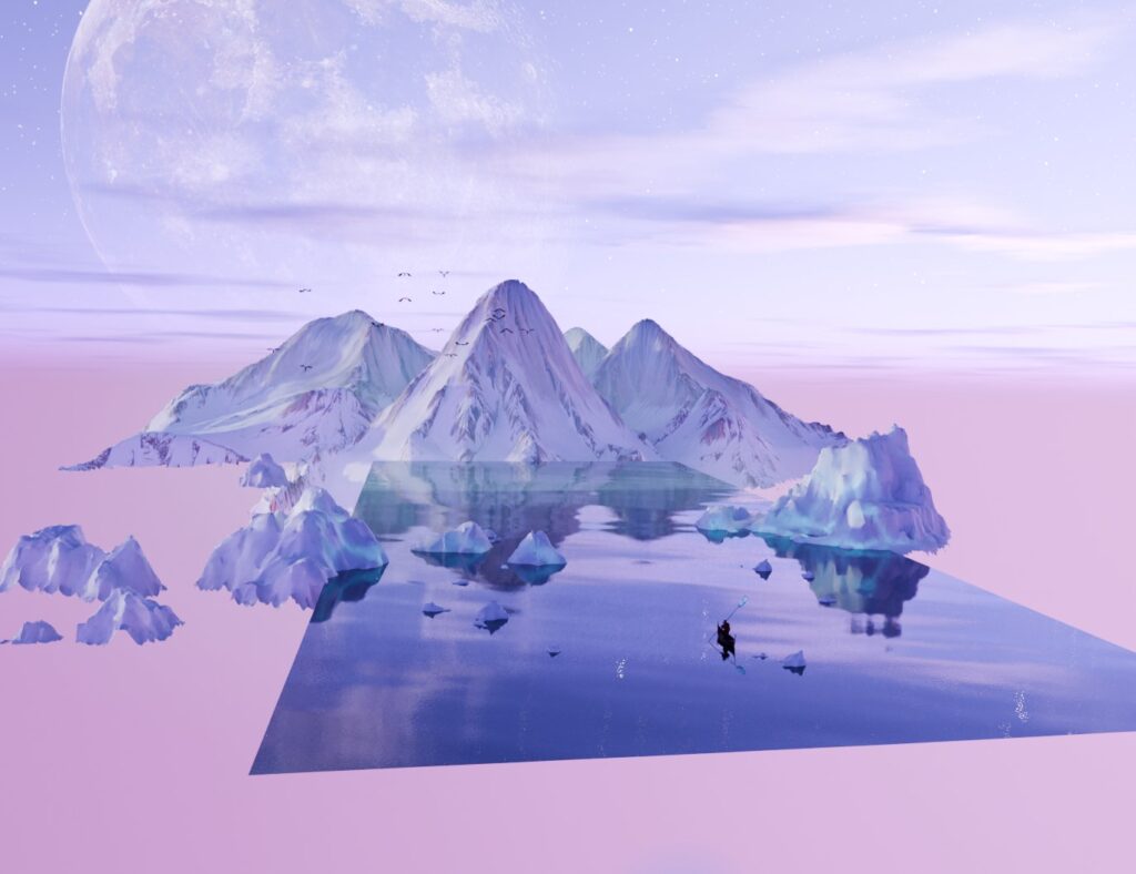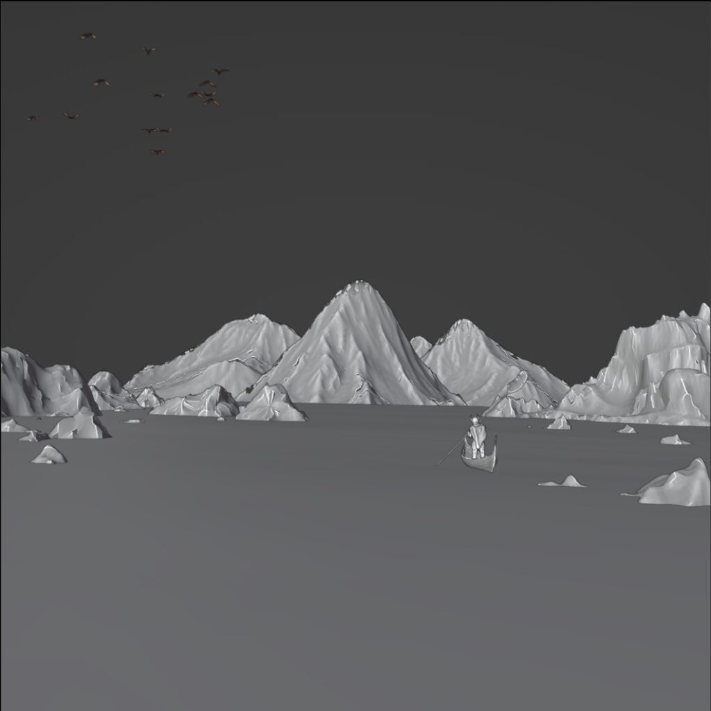 Un personnage animé au milieu d’un glacier. J’ai réalisé et fait le rendu de la scène sur Blender. L’animation est faite en motion capture, la rame est modélisée dans Blender et texturée dans Substance Painter. De nombreux éléments sont des assemblages d’assets que j’ai modifiés, retexturés et animés.